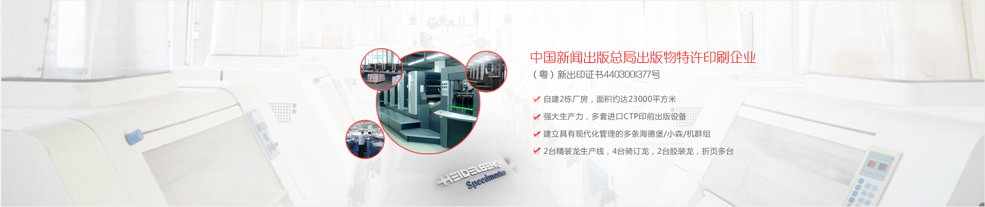 公司實力雄厚,設備先進。 聚集了許多高等院校的尖端高級印刷專業(yè)人才,擁有國際頂尖的、全球最大的成套印刷設備— - 德國海德堡-對開四色、五色、雙色、單色、四開四色機等的主體印刷設備, 擁有高水準后道加工系統(tǒng)—— 全電腦控制的斯塔爾折頁機、 STAHL 自動折頁機、 全自動鎖線機、 全自動騎馬訂聯(lián)動機、馬天尼膠裝龍、 程控切紙機、環(huán)保型過膠機、啤機等 精良裝備,整套印前印后設備。